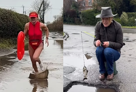 또 다른 영상에서는 포트홀 위에 앉아 낚싯대를 드리운 채 "지방자치단체가 만든 낚시터를 시험해 볼 기회가 정말 마음에 든다"고 농담을 던지기도 했습니다.