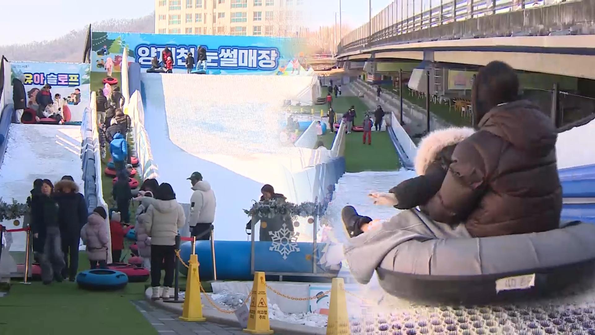 방학 맞은 아이들 모여라…양재천 눈 놀이터 인기