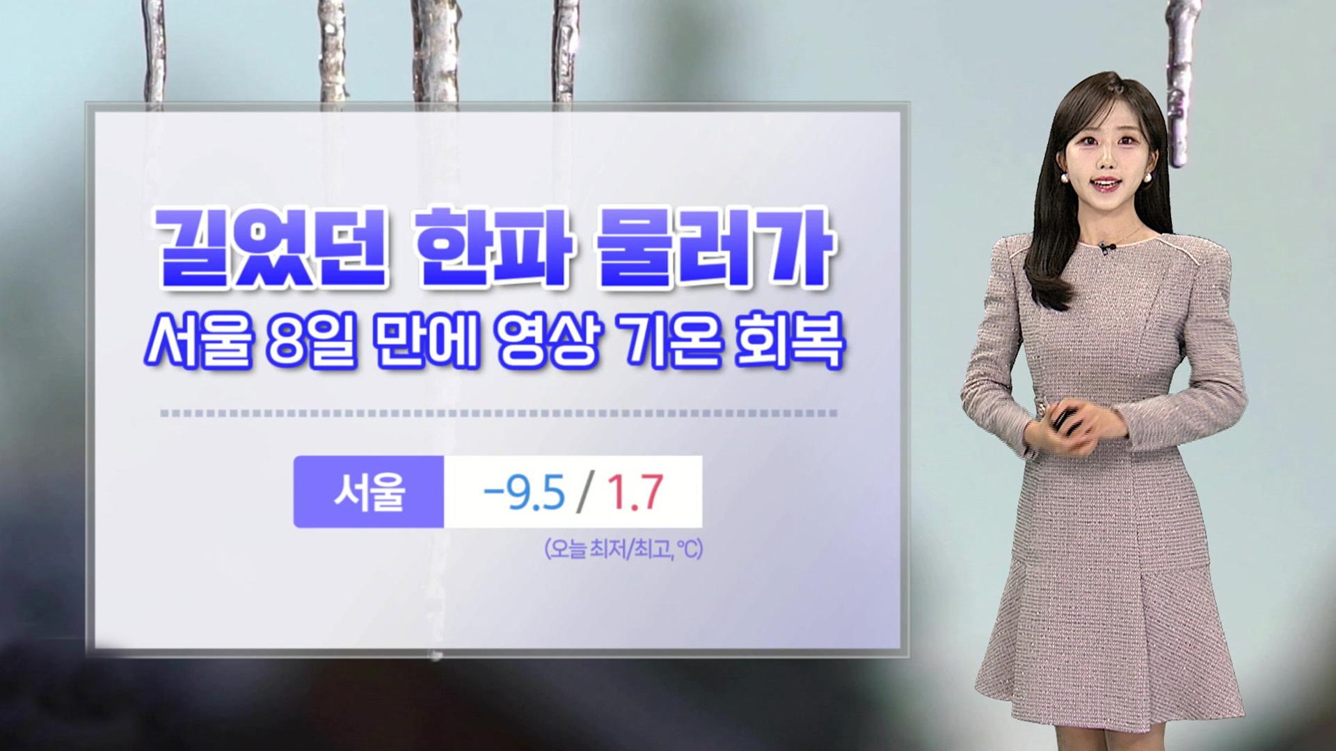 [날씨] 서울 8일 만에 영상 기온 회복…내일 서쪽 곳곳 눈
