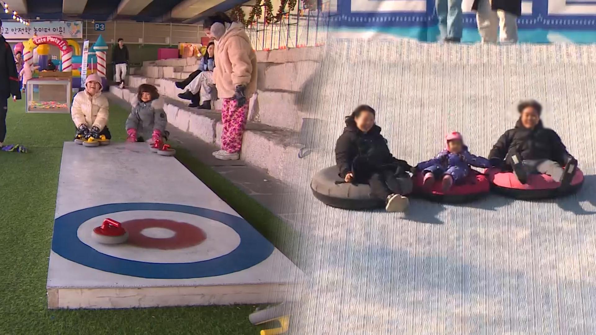 눈썰매 타고 컬링 즐겨요…겨울 눈 놀이터 활기