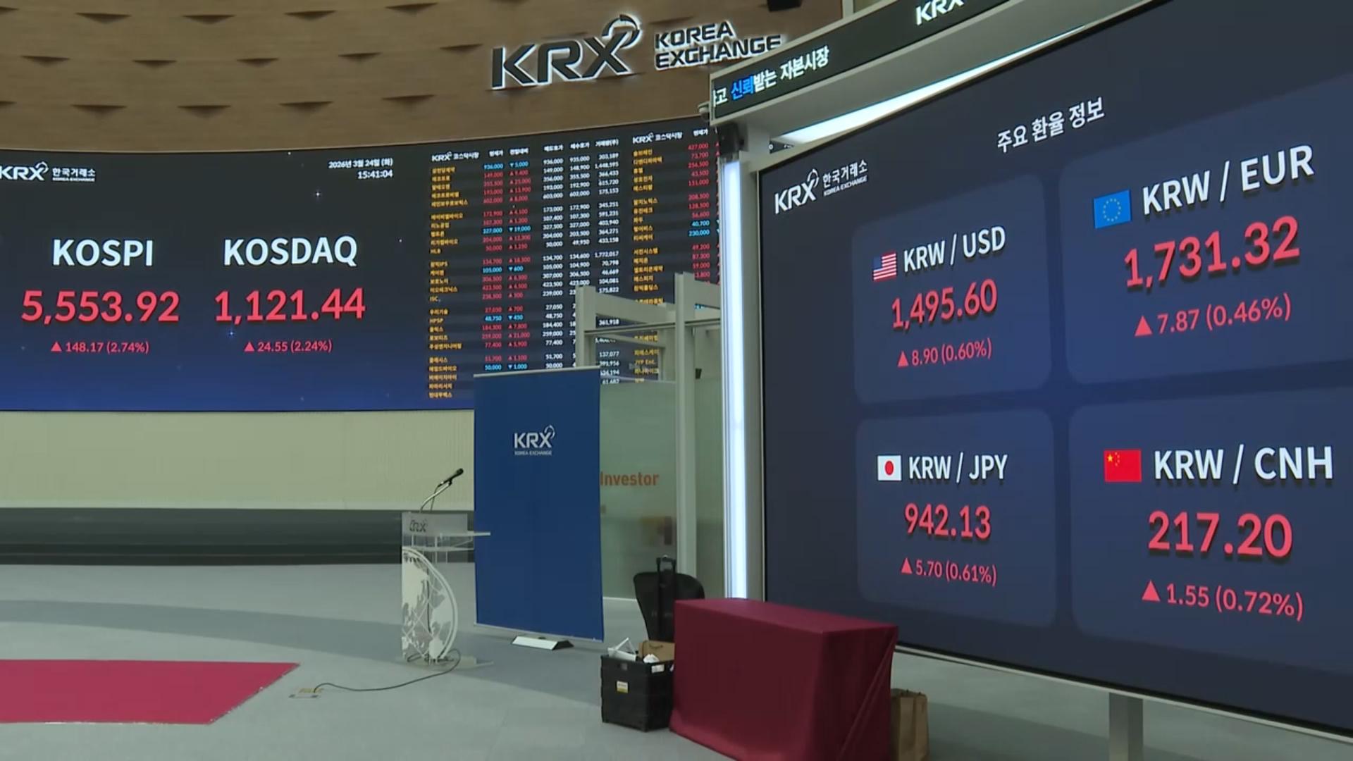 '트럼프 타코' 코스피 5,500선 회복…환율 1,500원 하회
