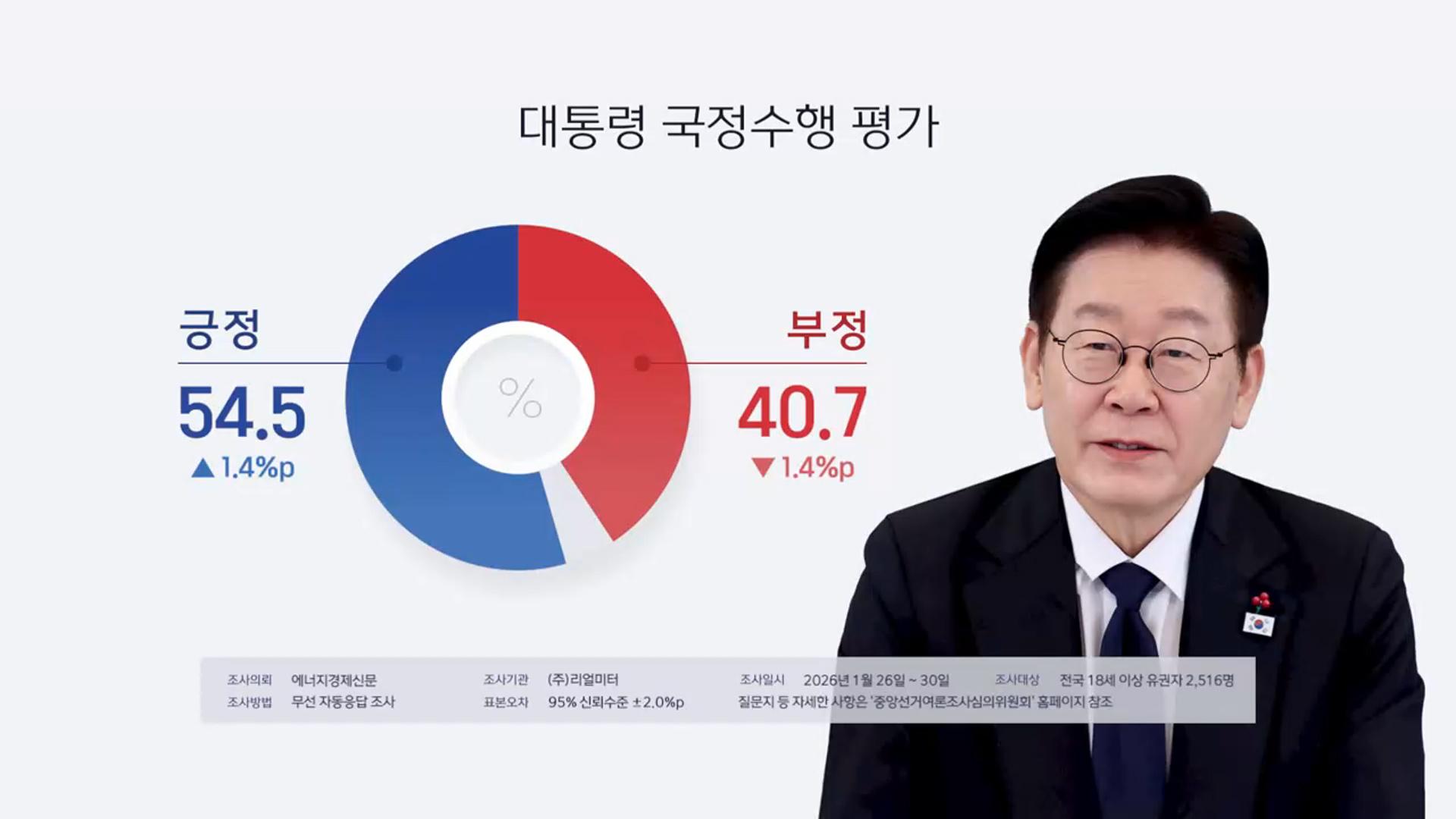 리얼미터 "이 대통령 국정 지지도 54.5%"