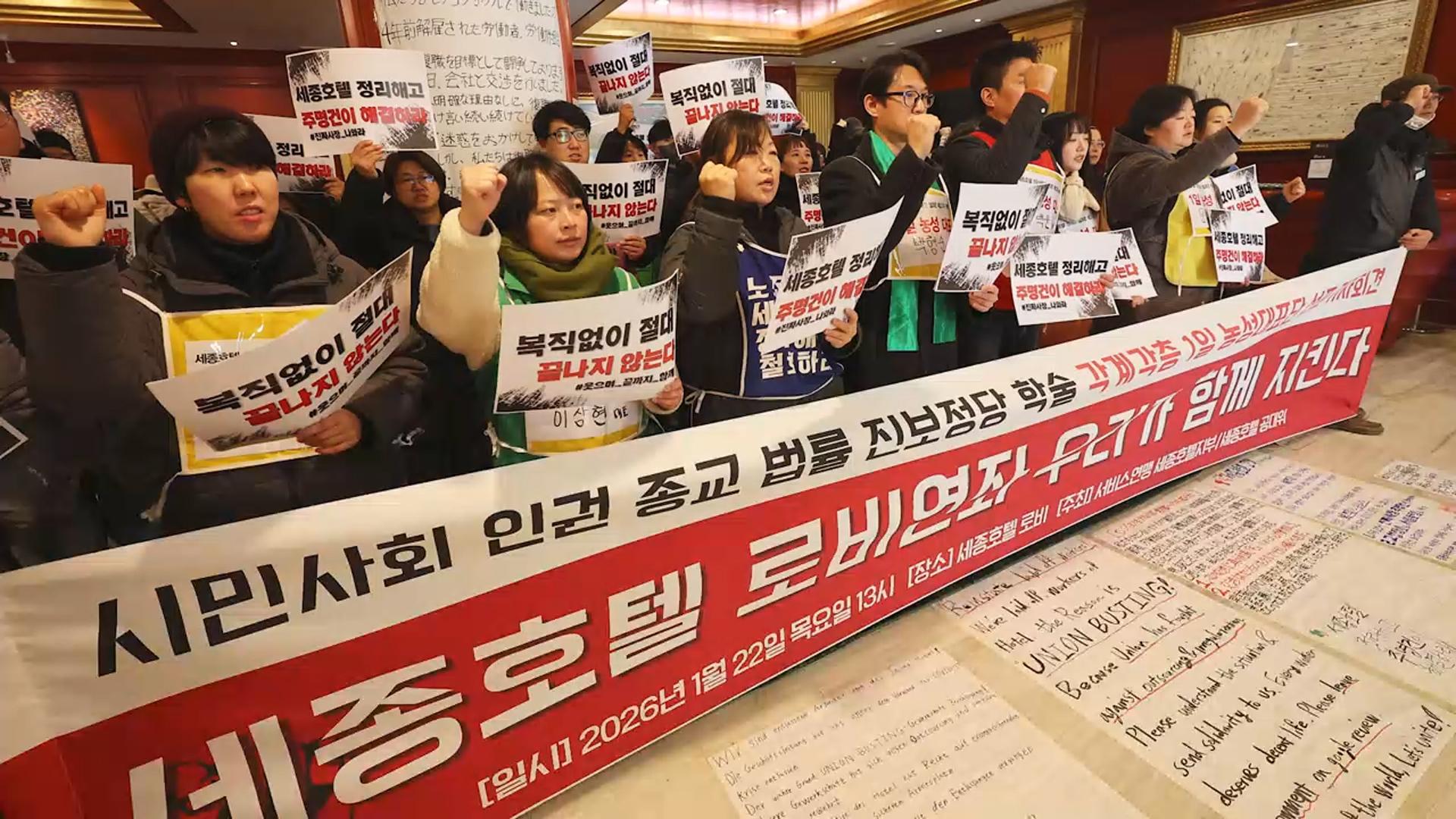 '복직 농성' 세종호텔 노동자 등 10여명 연행