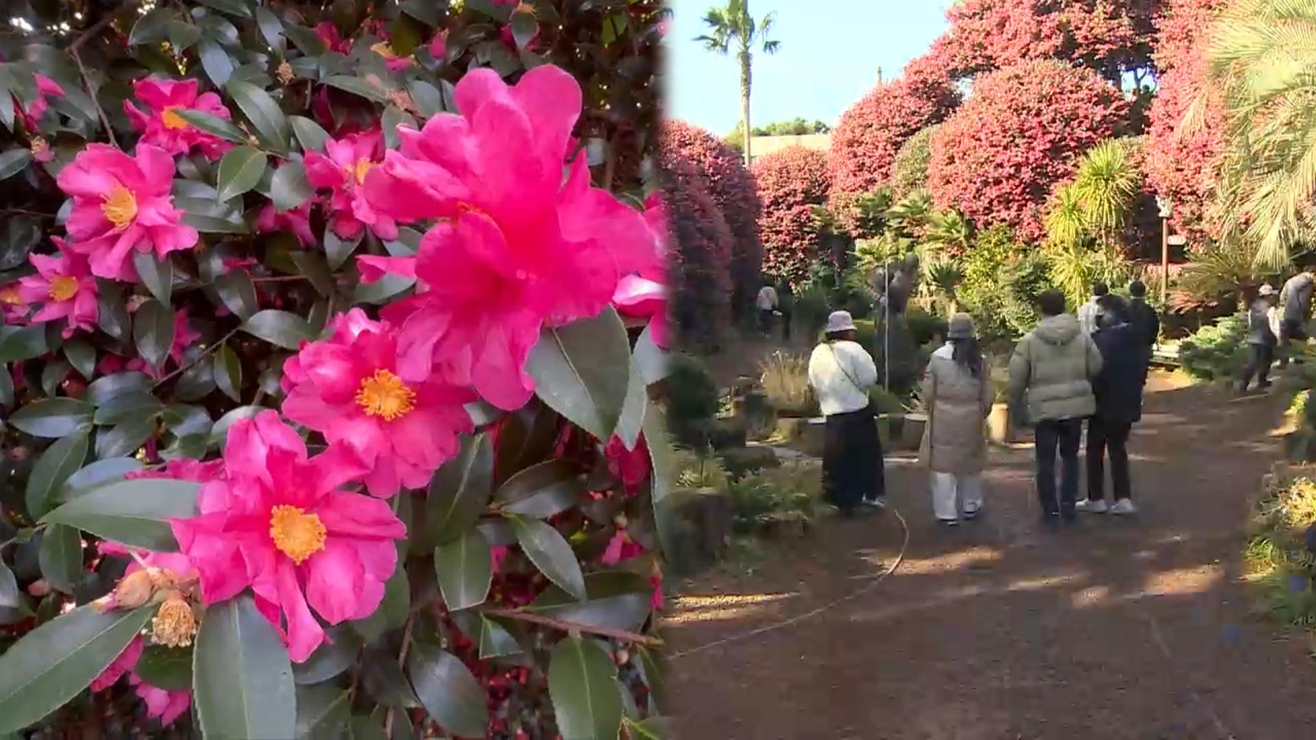 겨울 동백꽃 만개한 제주…관람객 발길