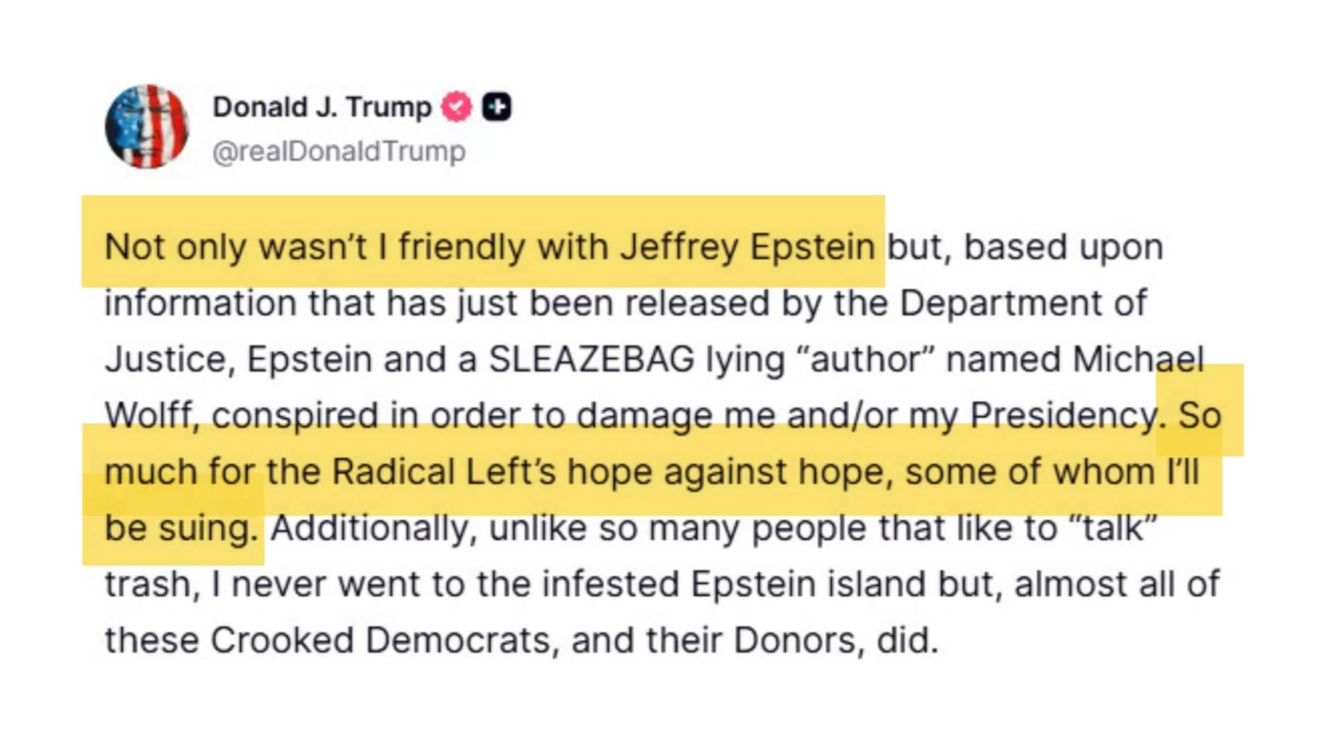 엡스타인 논란 일파만파…트럼프, 소송까지 경고